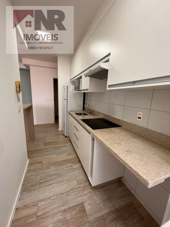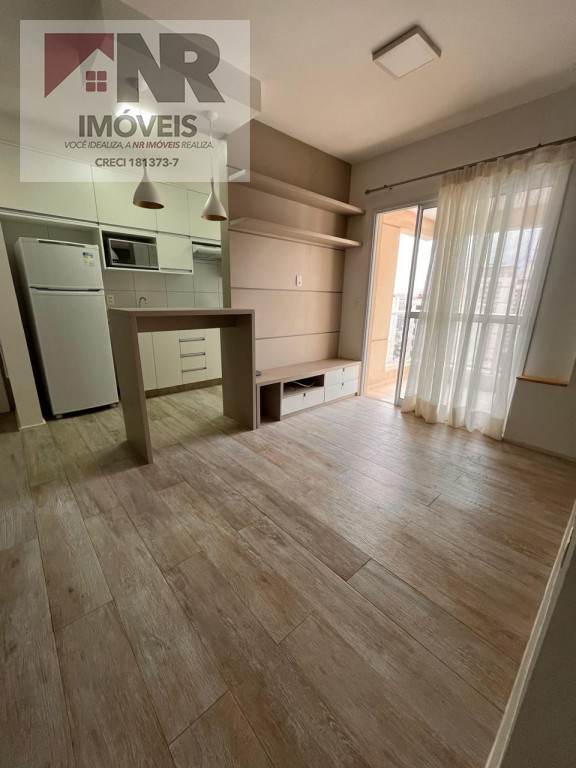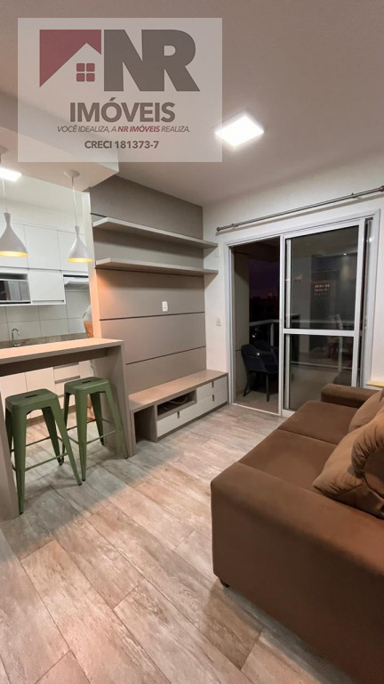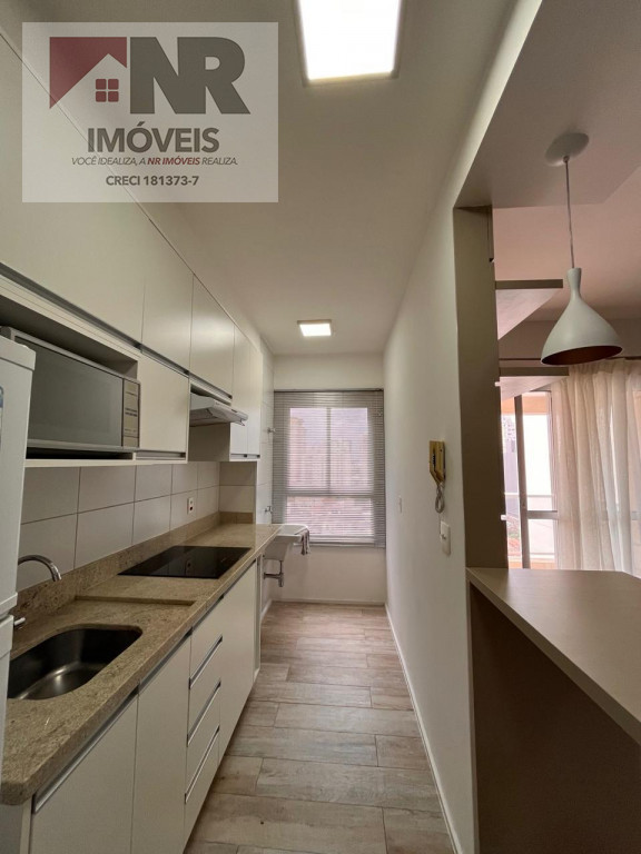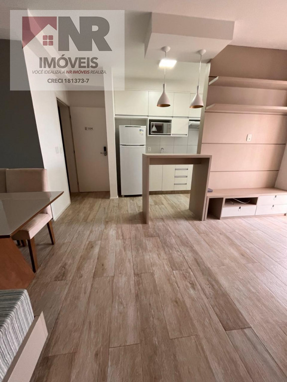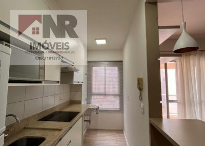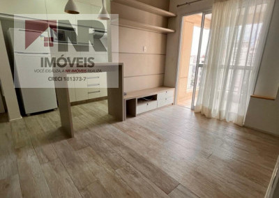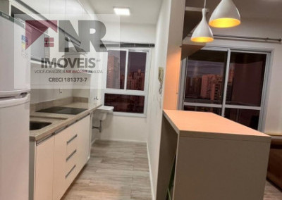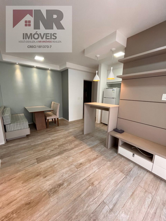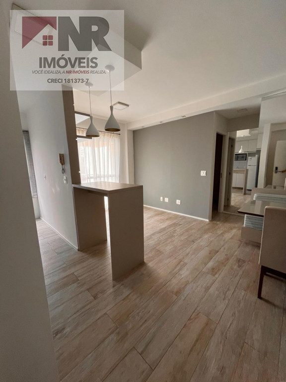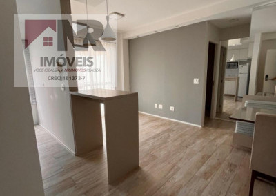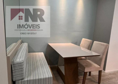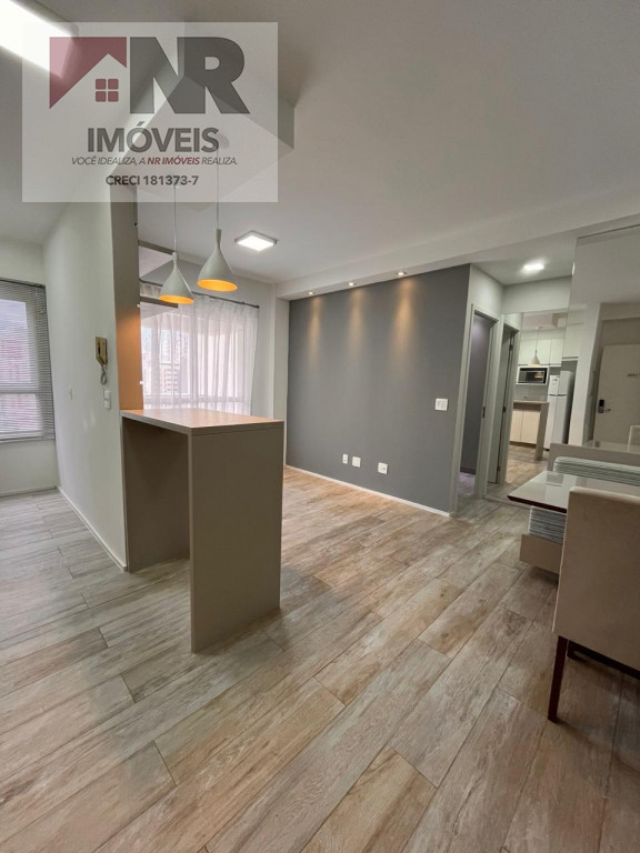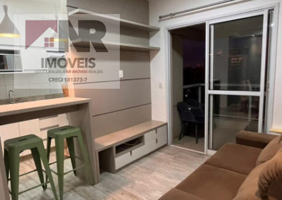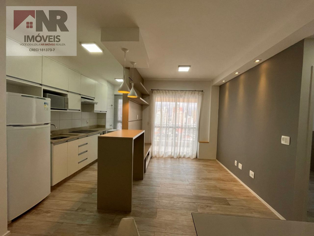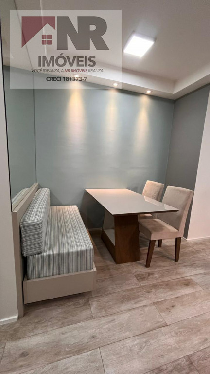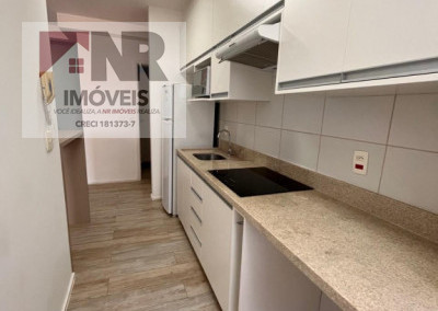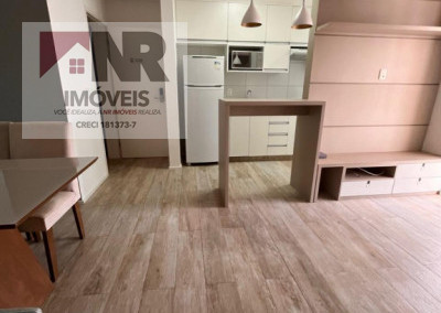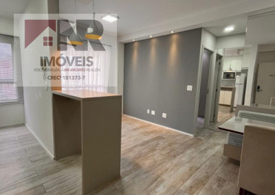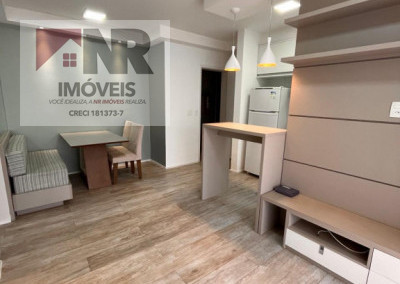 O apartamento possui acabamento moderno e está totalmente mobiliado, pronto para morar.