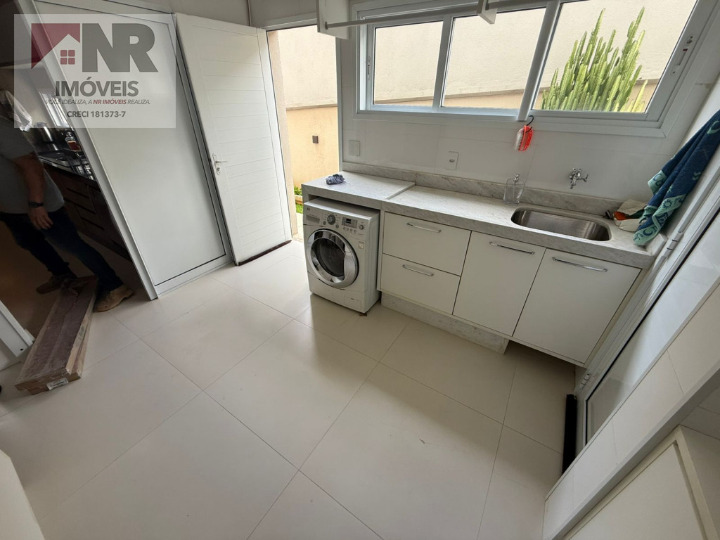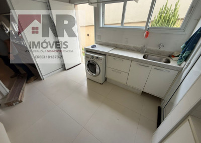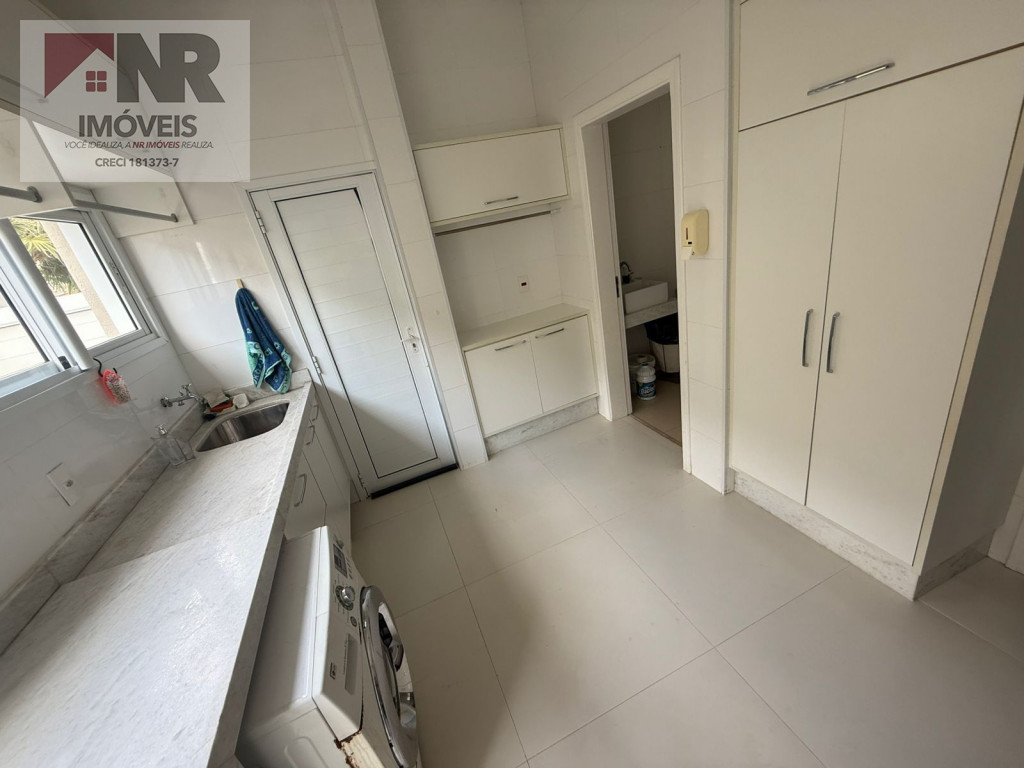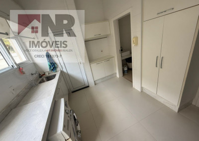 • Lavanderia ampla e fechada, com armários, pia e banheiro de apoio
