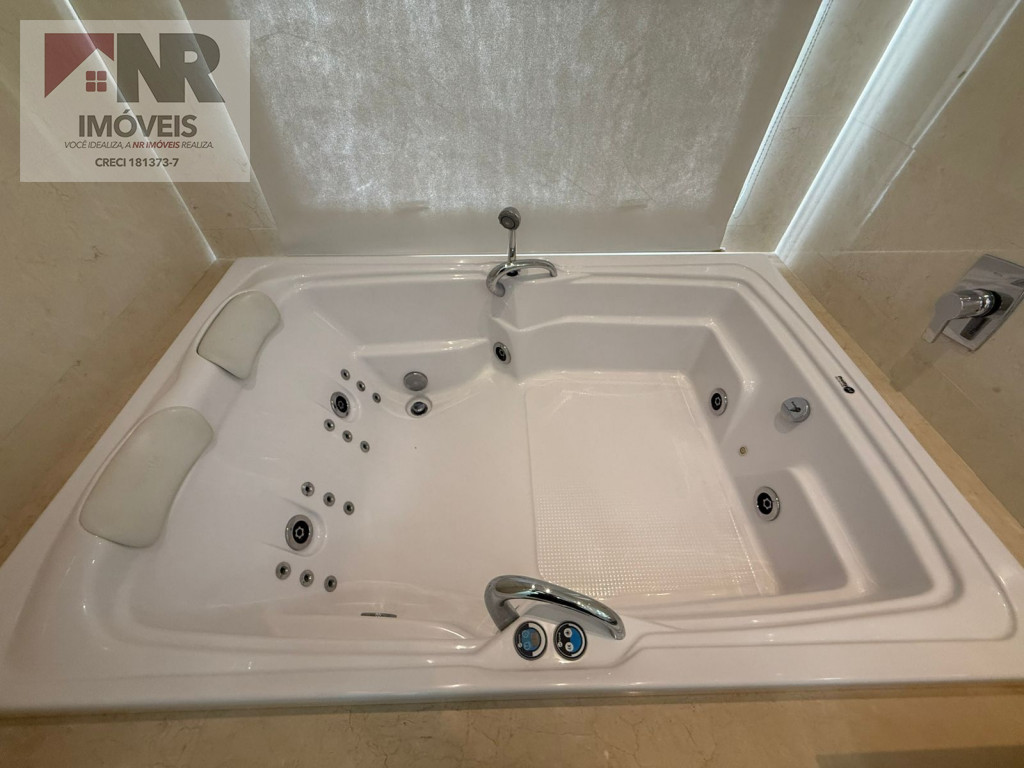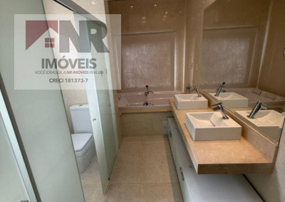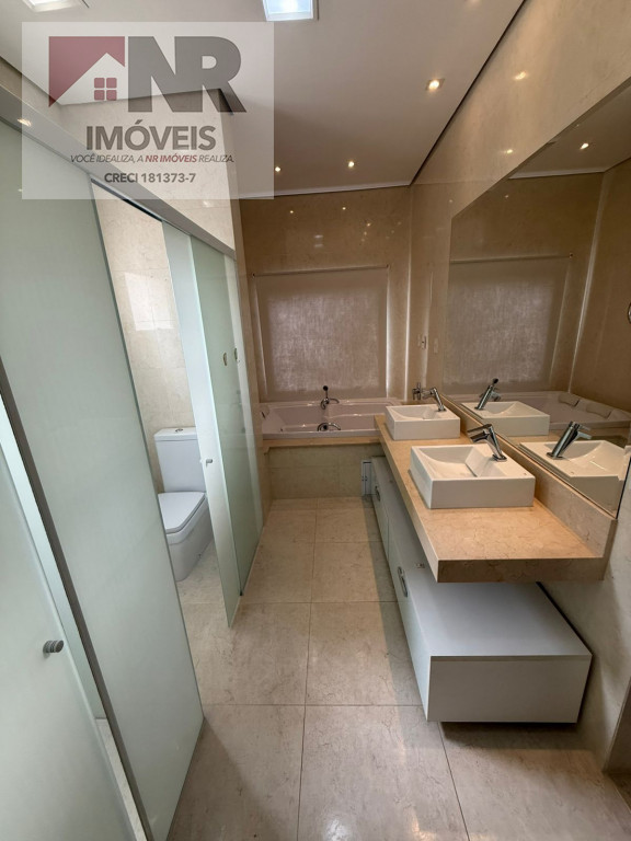 • Suíte master com banheira, duas pias e espaço generoso para closet